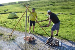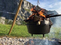 In diesem Jahr sind wir in der wunderbaren Region des Diemtigtals unterwegs, in welchem noch nach ganz alter Tradition Käse hergestellt wird. Die Wanderungen führen unteranderem am Seebergsee vorbei und maximal bis 2070müM (Niderhore). An allen Tagen kann alternative eine längere Route gewählt werden oder (beschränkt) mit dem Geländewagen mitgefahren werden. Unter dem Motto „Helfen und Wandern“ werden wir zwei Alpwirtschaften bei Ihrer täglichen Arbeit unterstützen und dabei aber auch die gemütlichen und erholsamen Stunden in den Bergen geniessen. Nebst Arbeiten wie Zaun aufstellen, Steine zusammentragen, Wachholdern schneiden oder Holzen, sind die Alptage geprägt durch eine ungezwungene Atmosphäre, der Möglichkeit an wunderbaren Orten zu zelten und dabei erst noch einem Senn beim Käsen über die Schulter zu schauen. Wir besprechen in der Gruppe was wir täglich auf dem Feuer kochen und wandern nach einem vollendeten Arbeitstag einfach zur nächsten Alp. Das Gruppenmaterial wird dabei mit einem Geländewagen transportiert wodurch sich für konditionell schwächere Teilnehmer gleichzeitig eine Mitfahrgelegenheit anbietet. Es besteht zudem die Möglichkeit nur tageweise mitzukommen. Der Anlass ist auch für Kinder sehr empfehlenswert. Herzlichen Dank an alle, die uns begleiten – Merci vell mol!